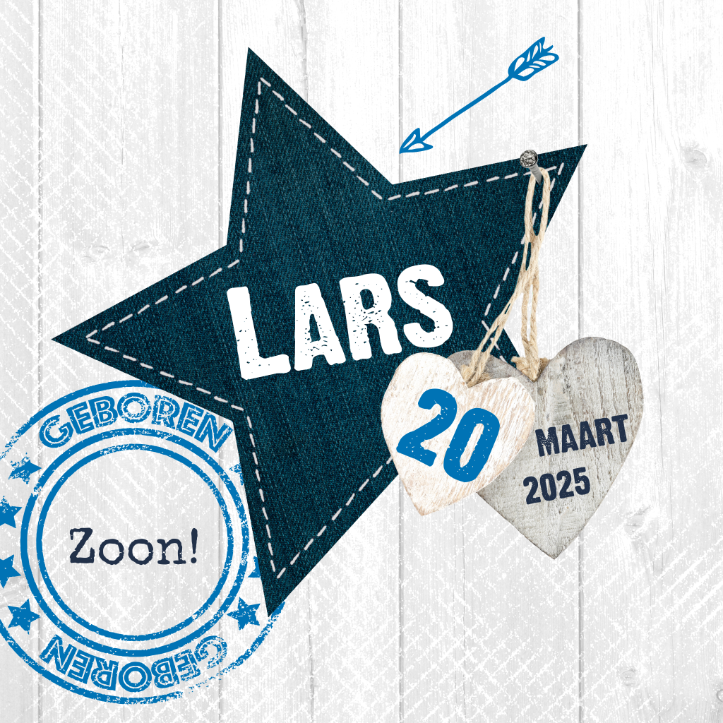 Stoer geboortekaartje met ster van spijkerstof