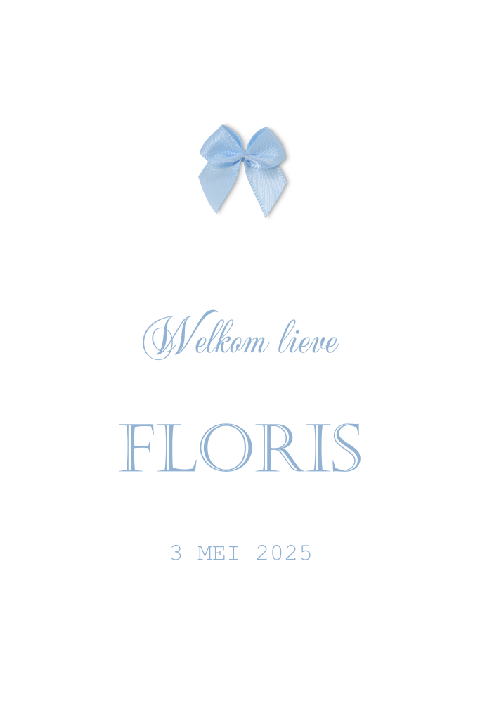 Klassiek kaartje voor de geboorte van je zoontje met een lief echt blauw strikje. Pas de lettertypes aan en schrijf je eigen tekst en maak zo je eigen kaartje.