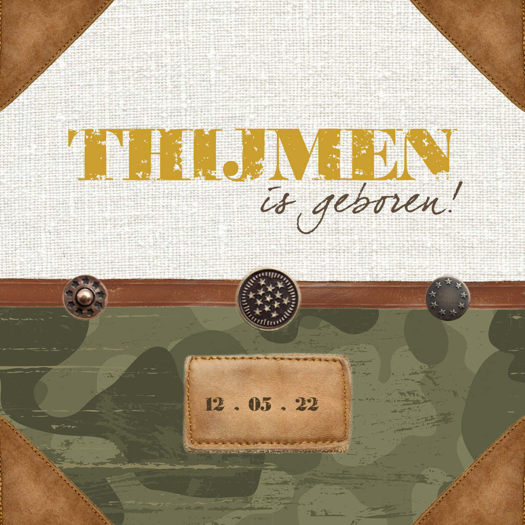 Retro geboortekaartje met legerprint