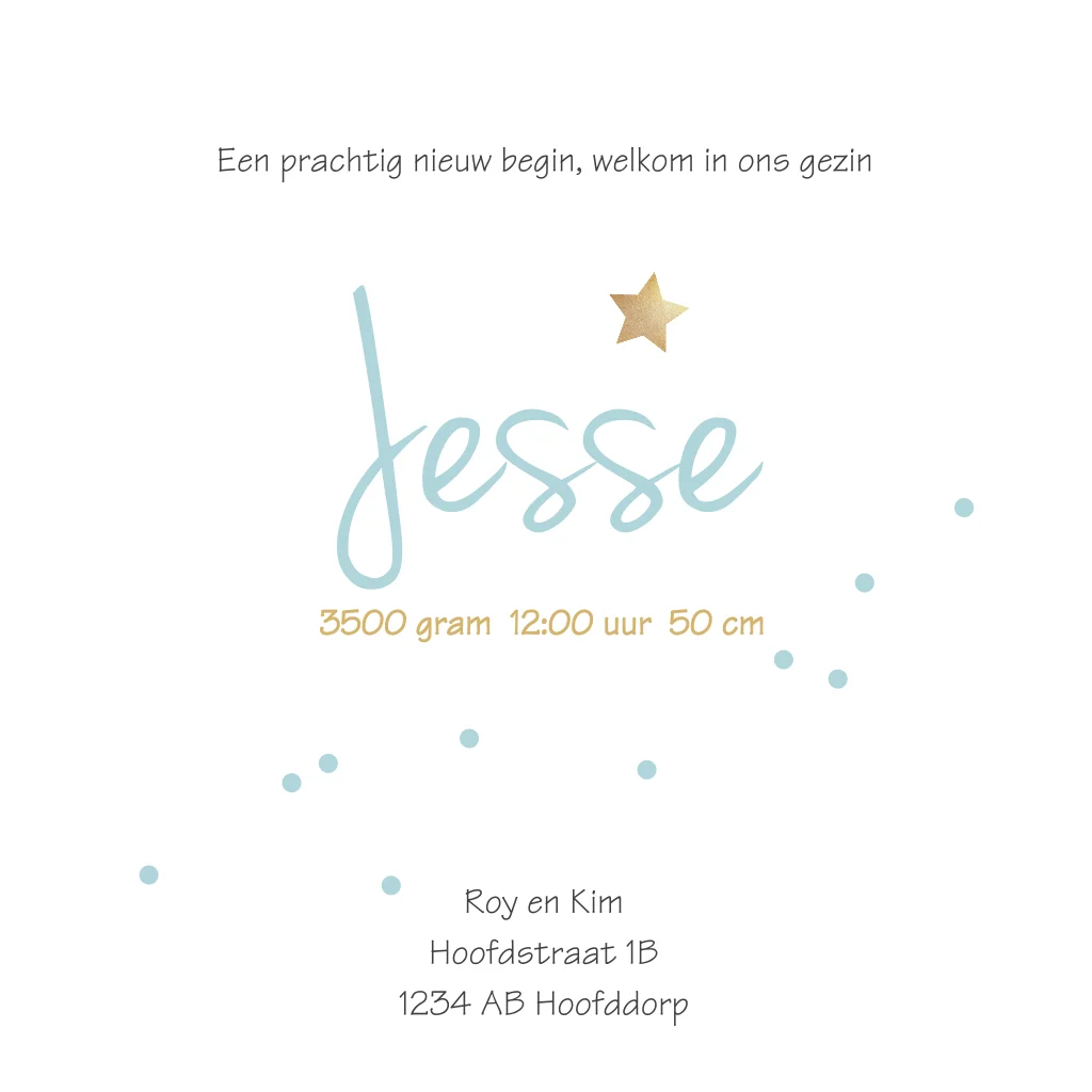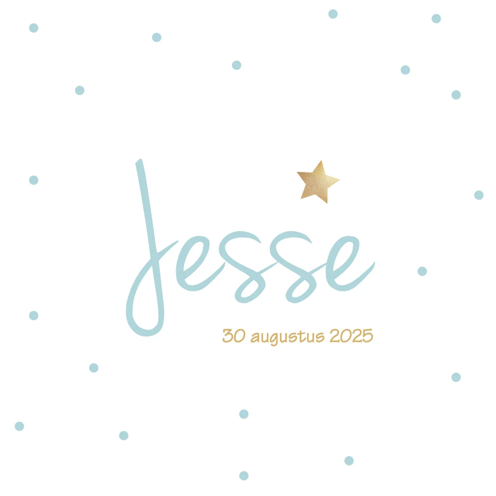 Klassiek kaartje voor de geboorte van je zoontje met een clean design met zacht blauwe stipjes.