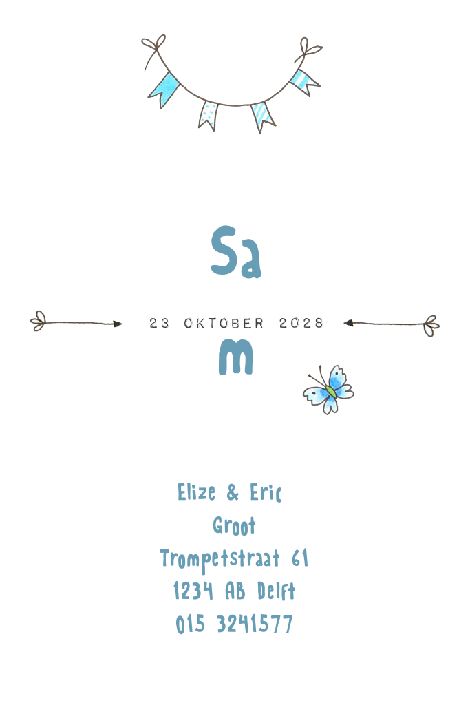 Geboortekaartje voor jongen met getekende dieren in trein
