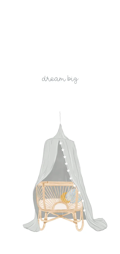 Prachtig, dit geïllustreerd geboortekaartje voor een zoontje! Op het witte kaartje staat een mooie tekening van een wieg met een lichtgrijs hemeltje. De naam op voor- en achterkant staat in hippe goudfolie letters, maak het kaartje persoonlijk in de online editor en bestel een proefdruk.