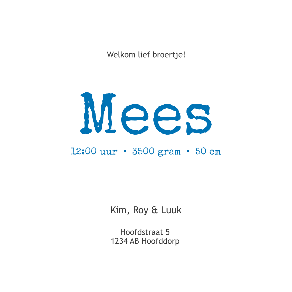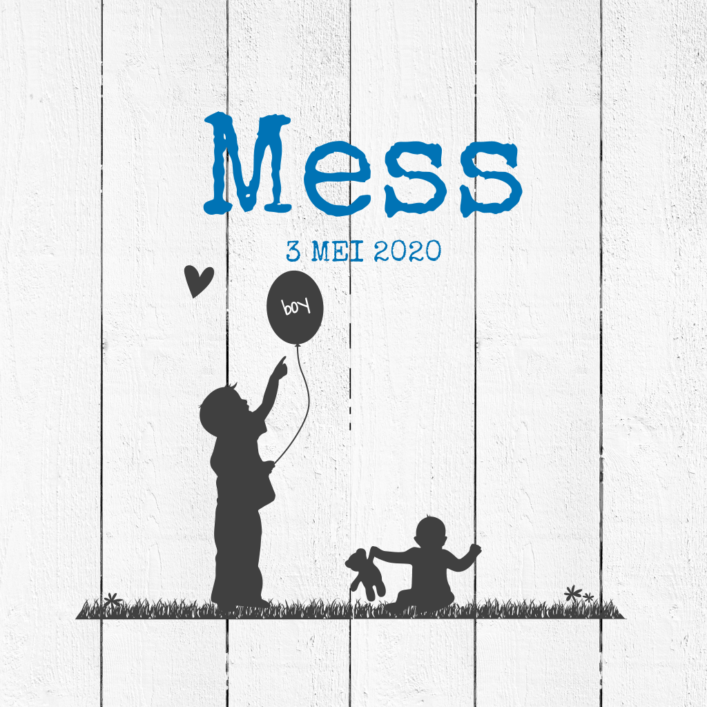 Lieve geboortekaart voor de geboorte van je tweede zoon! De twee silhouetten op de houten achtergrond geven aan deze kaart een stoere uitstraling. De teksten en de kleuren kunnen makkelijk in de editor aangepast worden.