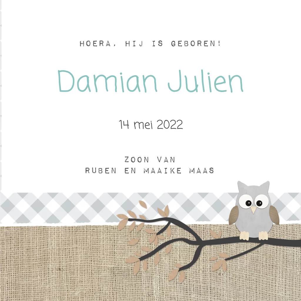 Geboortekaartje met uiltje voor jongen