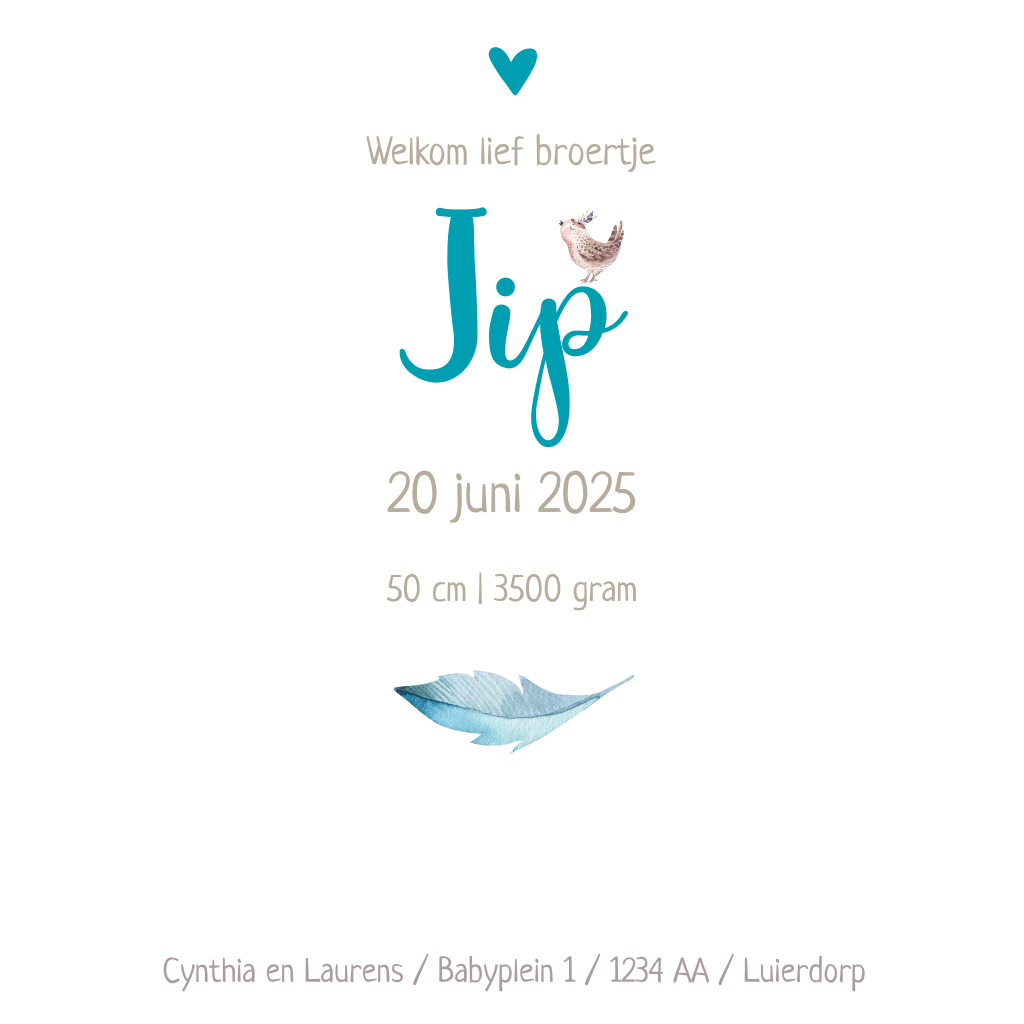Een vrolijk en stijlvol kaartje voor een jongen! Met verschillende kleuren, veertjes, bloemen, vogeltjes en een beertje op de voorkant. Het kaartje heeft mooie kleurencombinaties en is in aquarel.