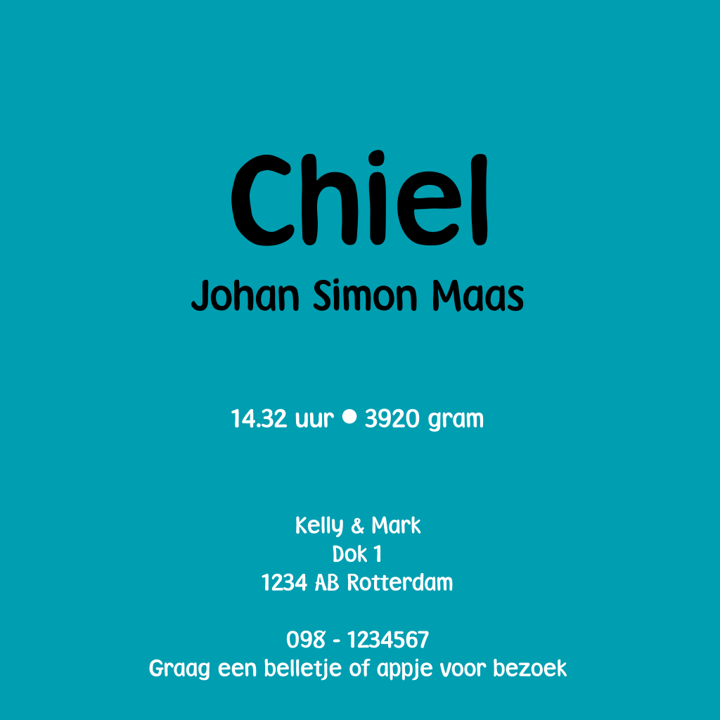 Super stoer en grappig kaartje met aapje om de geboorte van je zoon aan te kondigen. Wij hebben gekozen voor petrol. Wat is jouw favoriete kleur? Wijzig eenvoudig de achtergrond van het kaartje in de editor.