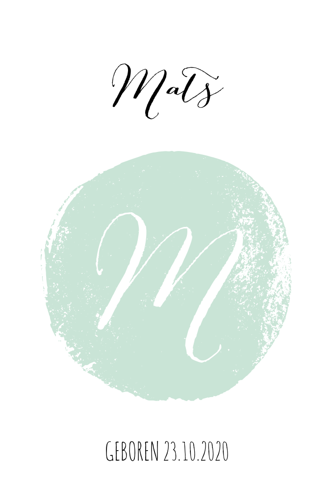 Hip geboortekaartje voor jongen met voorletter is een rondje. Hierdoor ziet de kaart er fris en minimalistisch uit.