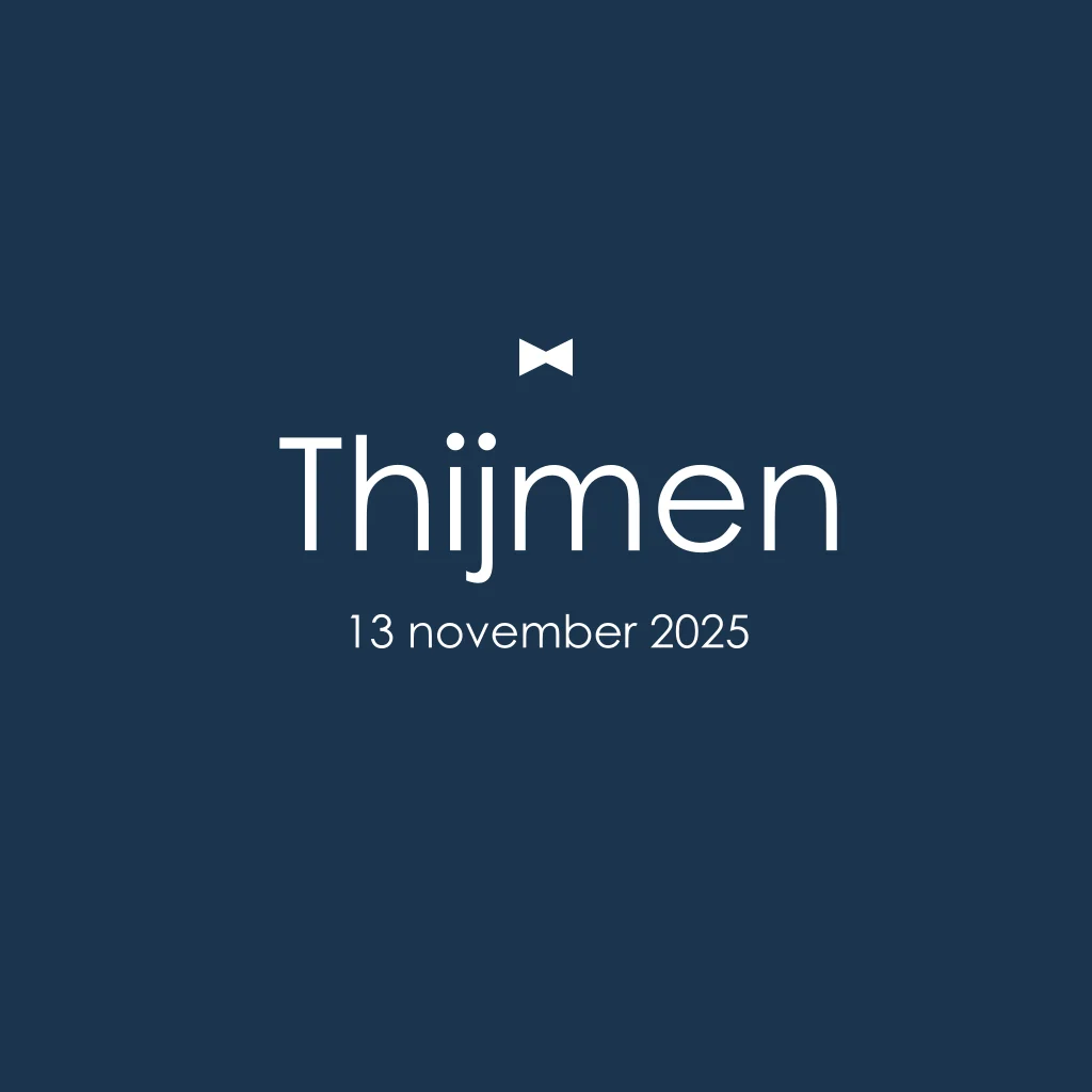 Vierkant geboortekaartje in blauw met een strikje. Leuk voor de geboorte-aankondiging van een zoontje.
