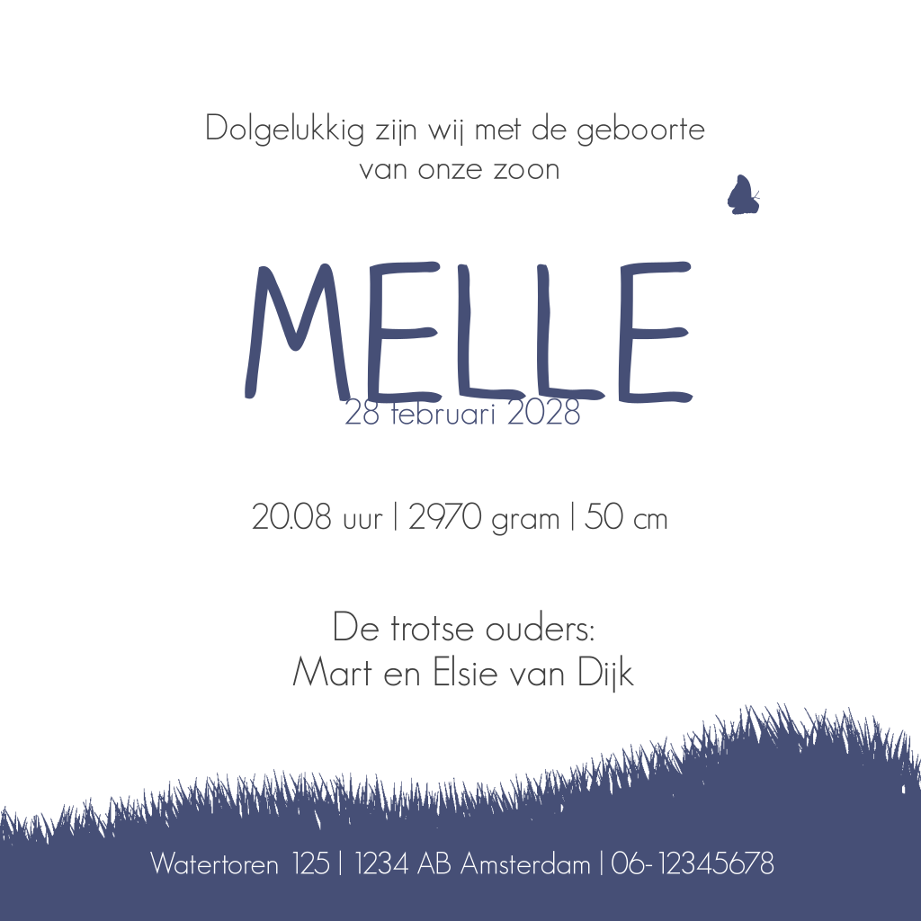 Krijg je een jongen? Gefeliciteerd! Wat vind je van dit geboortekaartje met silhouetten? Aan de tak van de boom hangt een schommel met een silhouet van een jongetje erop. Ernaast staat de naam en ook aan de binnenkant ziet het er prachtig uit.