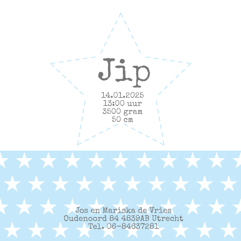 Een stoer en hip geboortekaartje met letterslinger, eigen foto, sterren en houtlook voor de geboorte van een broertje!