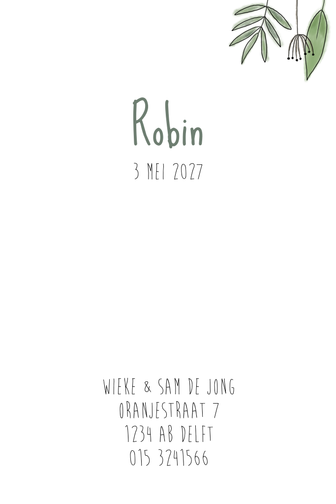 Schattig babykaartje in thema jungle met ballon en takjes