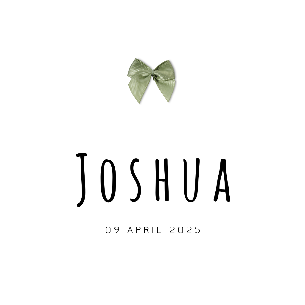 Hip geboortekaartje met strikje voor een jongetje. Je kunt de lettertypes aanpassen, zodat het past bij jouw stijl.
