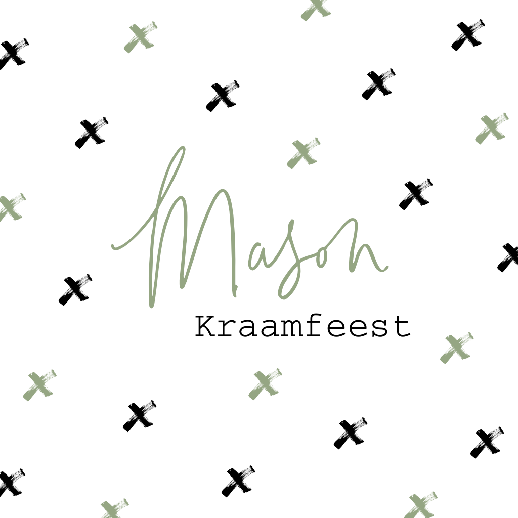 Een vierkant kraamborrelkaartje met allemaal vrolijke kruisjes: wat trendy! Leuk voor een zoontje. Maak hem compleet met eigen teksten en een bijpassende envelop!