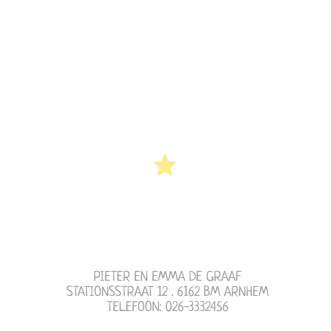 Hip uitnodigingskaartje voor een kraamborrel met een foto en goudfolie ster.