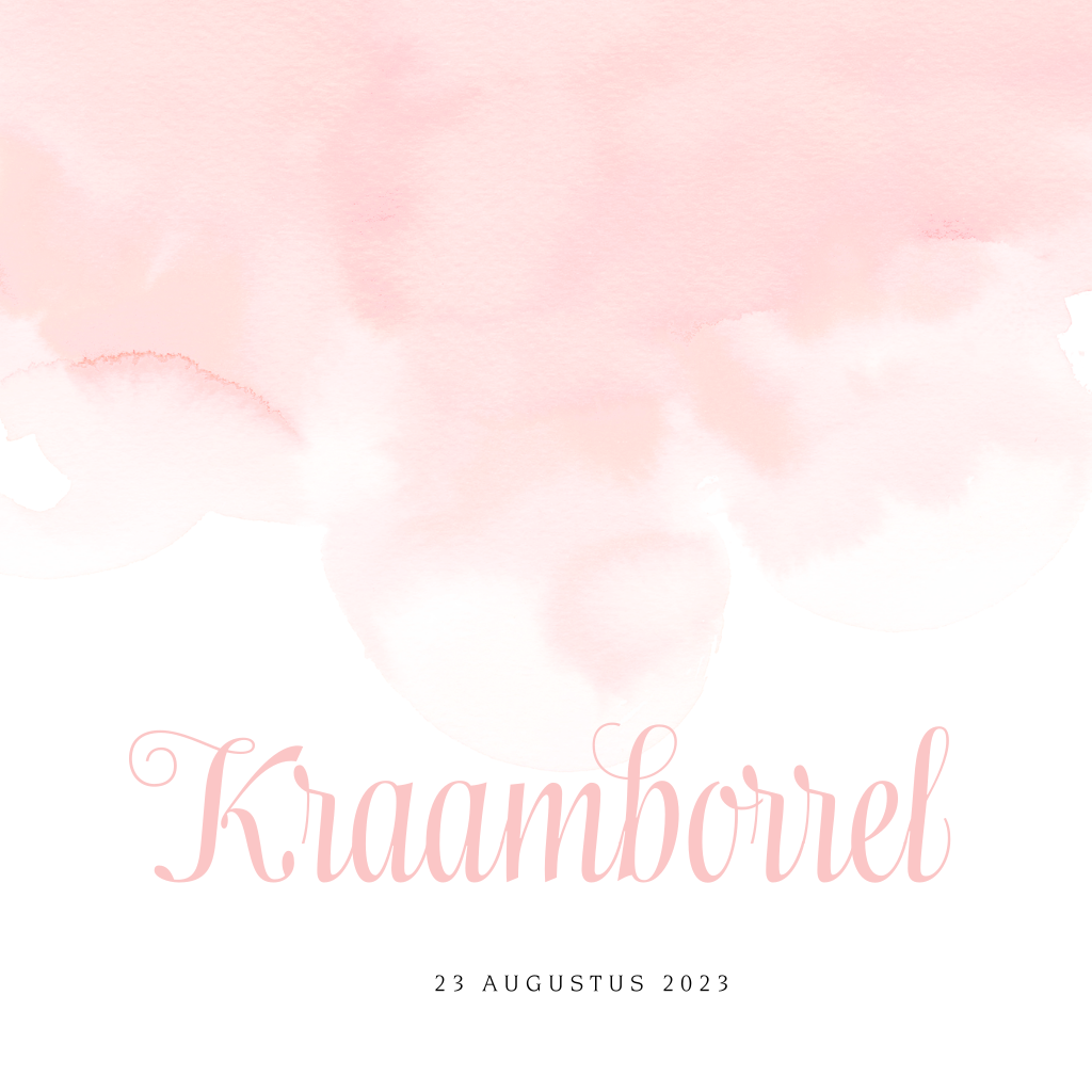 Een vierkant, enkel kraamborrelkaartje voor een meisje. Gepimpt met roze watercolour en trendy lettertypes. Iets voor jouw kleintje? Maak hem zelf af!
