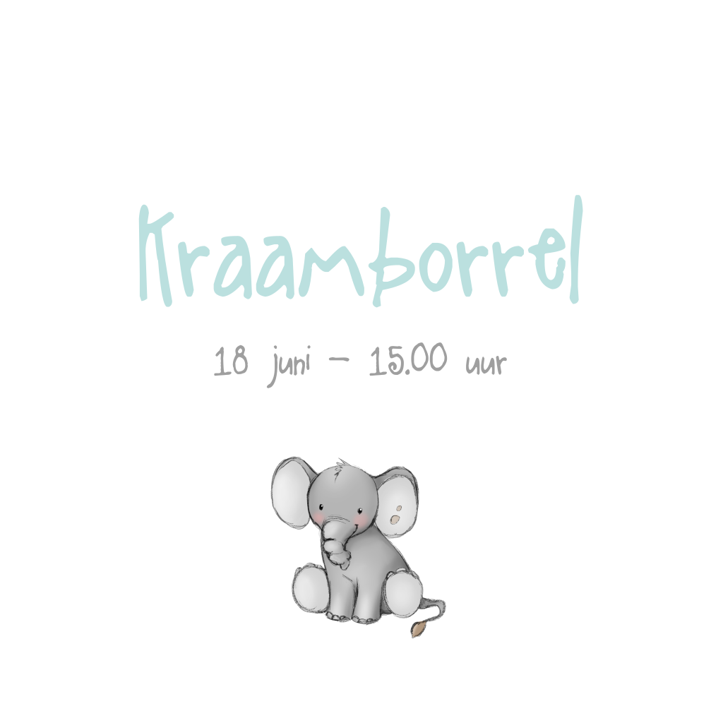 Lief kraamborrelkaartje met olifant. Het olifantje is bij Poobies razend populair en staat schattig op de geboortekaartjes en kraamborrel uitnodigingen.