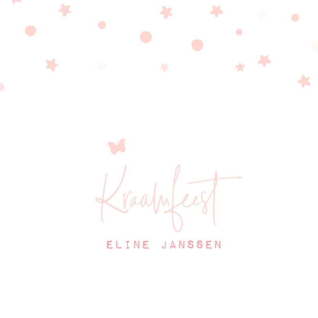 Wat een schattig, vierkant babyborrelkaartje met roze stippen, sterren en een vlinder! Leuk voor een meisje. Wanneer vieren jullie feest?