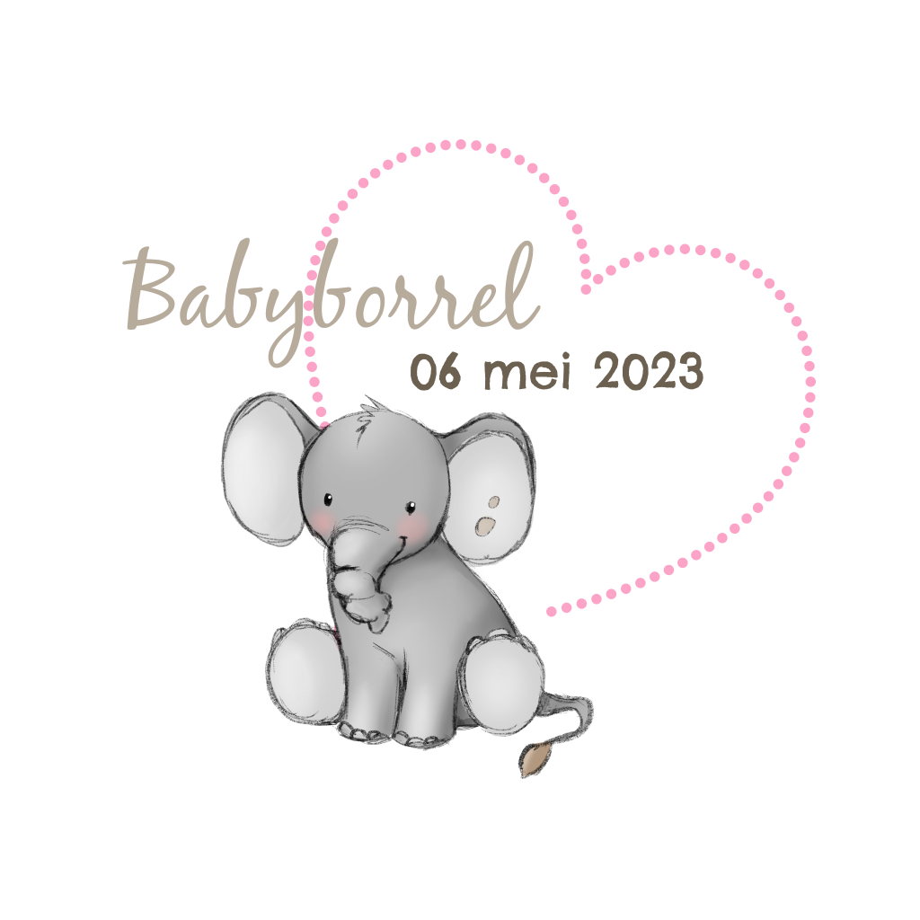 Dit lieve olifantje is onweerstaanbaar! Het maakt de babyborrel-uitnodiging helemaal af! Het roze hart van stipjes geeft het kaartje een extra schattige uitstraling. De achterkant van dit babyborrelkaartje is ingedeeld met vakken met verschillende informatie over het kraamfeest.