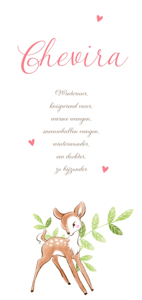 Geboortekaartje in vintage stijl met getekend hertje voor meisje. Op het kaartje staat een mooi geboortegedichtje in sierlijke typografie.