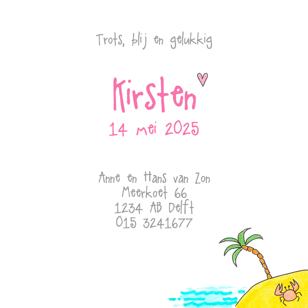 Geboortekaartje voor meisje met getekende wereldbol