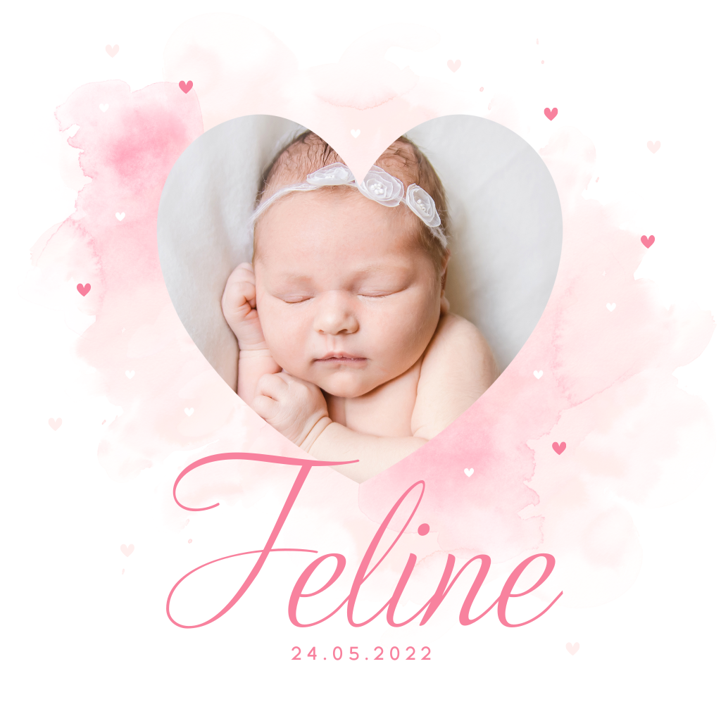 Een lief babykaartje voor een meisje met een hart waarin je de foto van je mooie meisje kunt plaatsen. De foto en de tekst kunnen makkelijk in de editor aangepast worden.