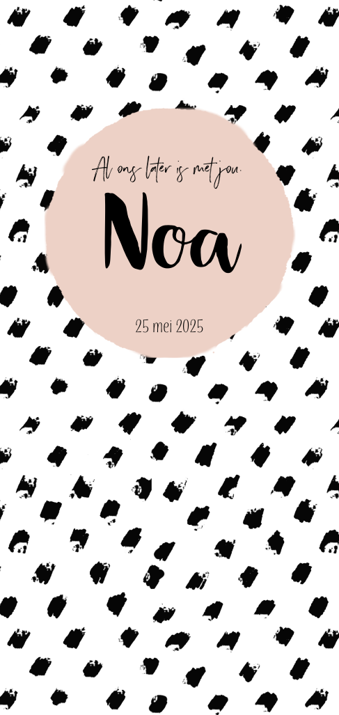 Hip en stoer geboortekaartje voor meisjes in roze en zwart-wit met een patroon van verfstreepjes. De tekst en de lettertypes kunnen in de editor aangepast worden.