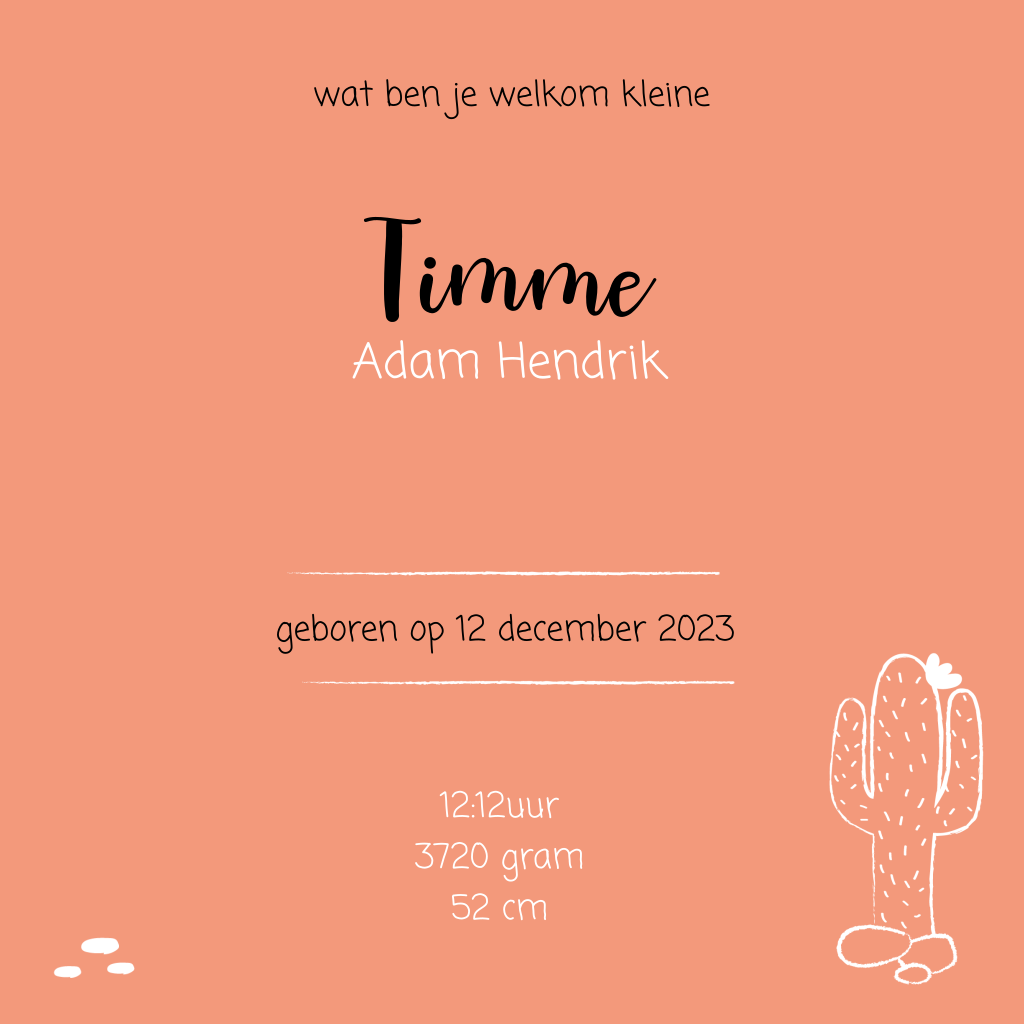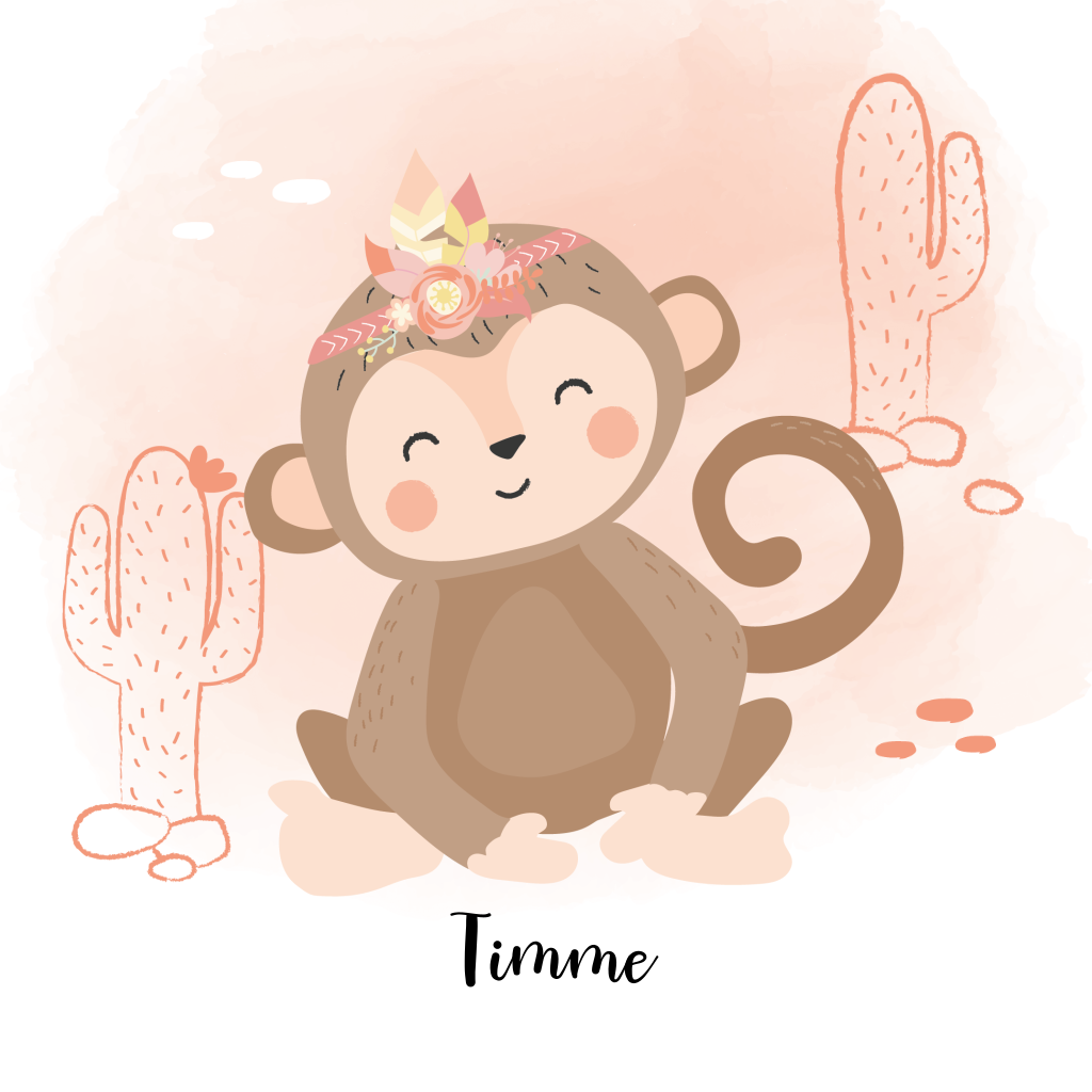 Wat een hippe geboortekaart in vierkant formaat! Met watercolour, cactusbomen en een lief aapje. Hoe heet jouw bengeltje?