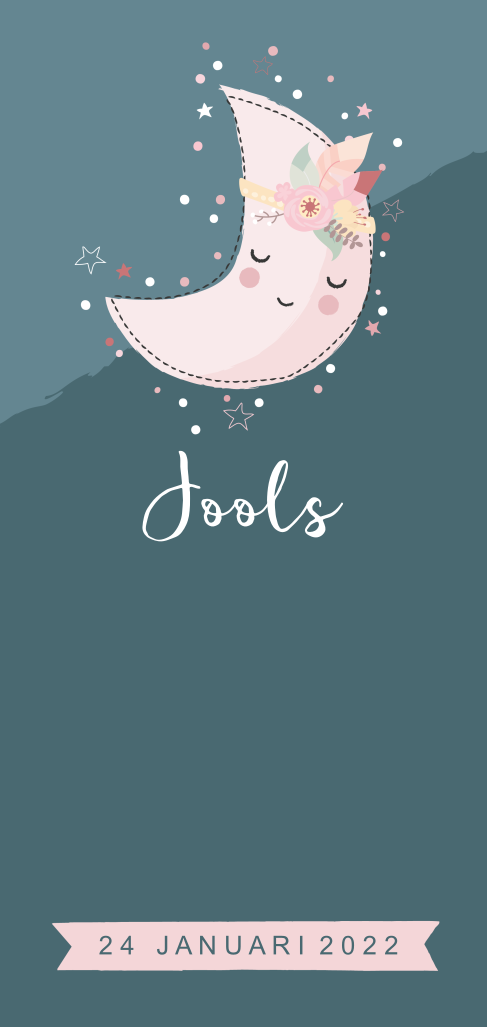 Schattig babykaartje voor de geboorte van jullie dochter! De maan met de bloementjes geven aan deze kaart een lieve uitstraling.