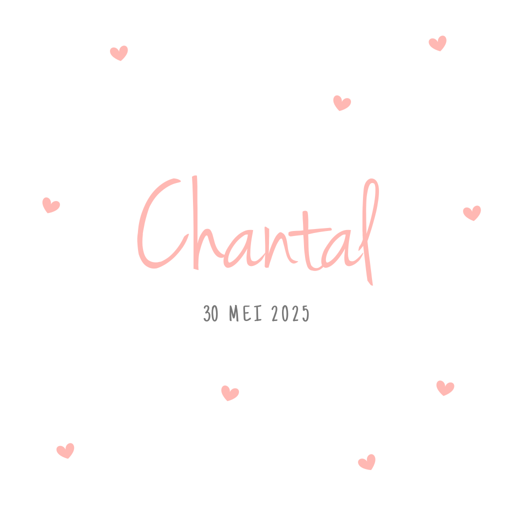 Simpel geboortekaartje met roze hartjes voor een meisje. Deze chique geboortekaart kan je leuk combineren met ons kraamborrelkaartje met hartjes.