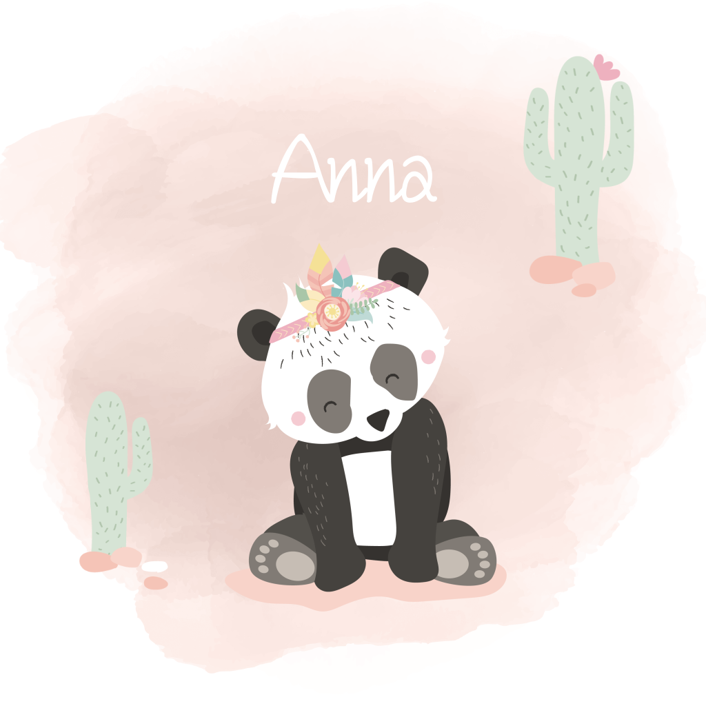 Een lieve pandabeer met een veertjesband op een achtergrond van hippe, roze watercolourverf met cactussen: super tof! Dit illustratieve geboortekaartje is leuk voor een dochter. Veranderen de teksten en kies de lettertypes die jij mooi vind!