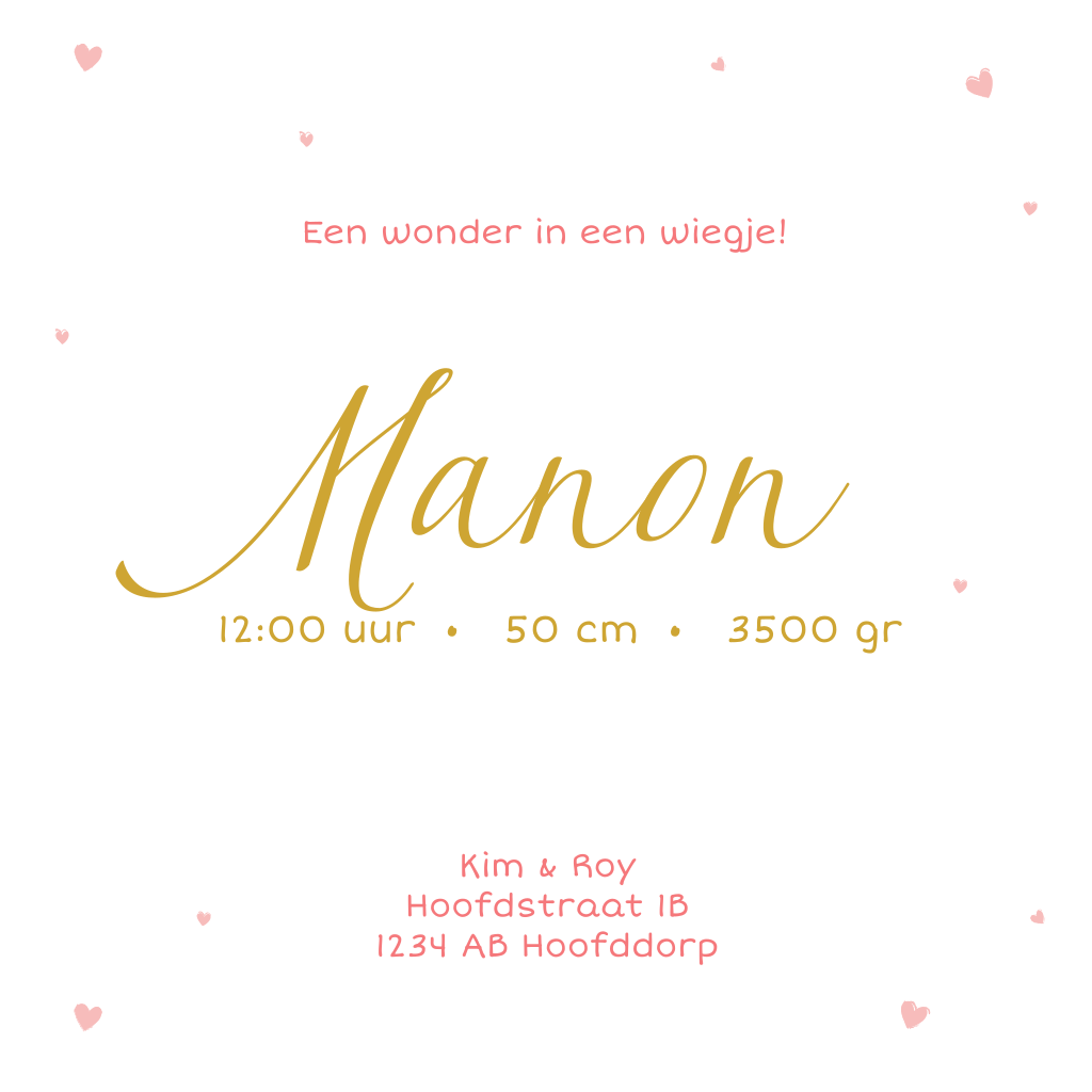 Uniek geboortekaartje voor een meisje met koraalkleurige verfstrepen en groot wit hart waarin de naam van jullie dochter gezet kan worden.