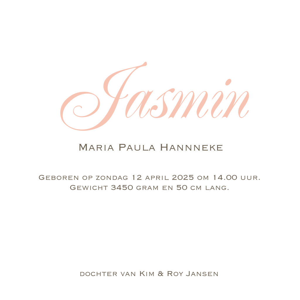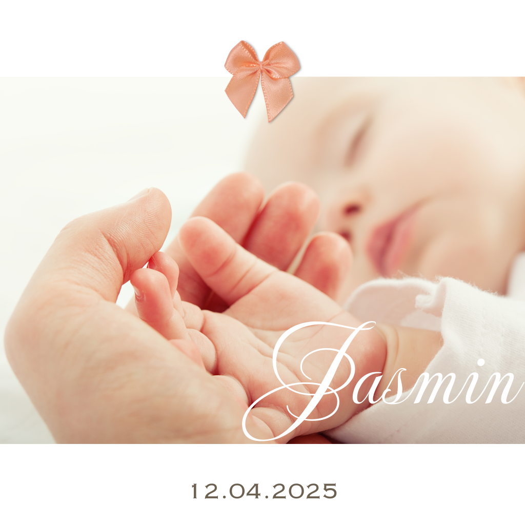 Schattig kaartje voor de geboorte van een lief meisje. Zet op de voorkant een mooie foto van de kleine meid zodat iedereen haar kan bewonderen. Het echte strikje op de voorkant maakt dit kaartje echt hip! Verander de achtergrond kleur, teksten en lettertypes en maak zo je eigen kaart.