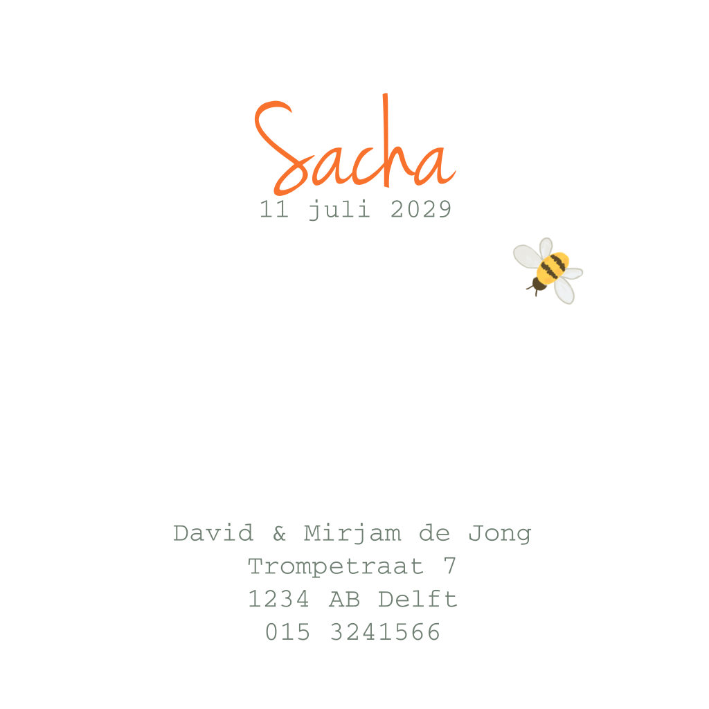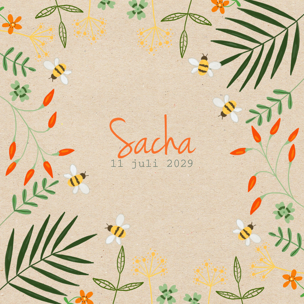 Geboortekaartje met bloemen en bijen op kraft