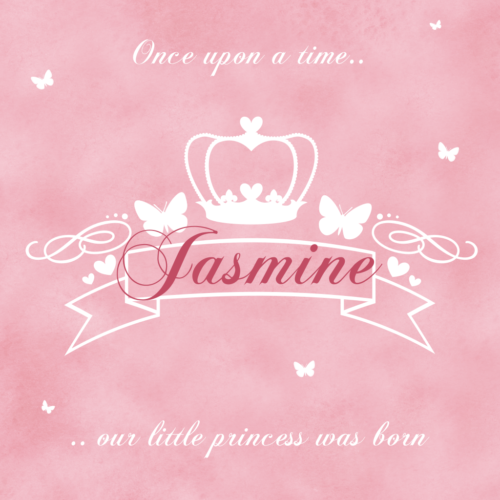 Sprookjesachtig geboortekaartje - Kroon en vlinders