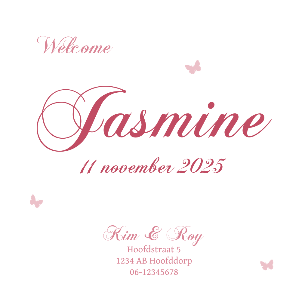 Is jouw dochtertje echt een prinsesje? Dan is dit snoezige geboortekaartje echt wat voor jou. De vlindertjes op het watercolour geboortekaartje vliegen om de naam van jouw meisje en je bent door dit kaartje in een sprookje.
