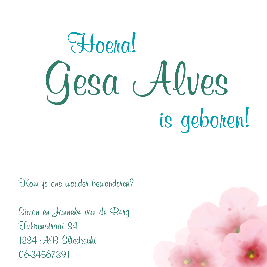 Inspiratie voor een mooie tekst in je geboortekaartje: "Geboren om voor altijd lief te hebben."