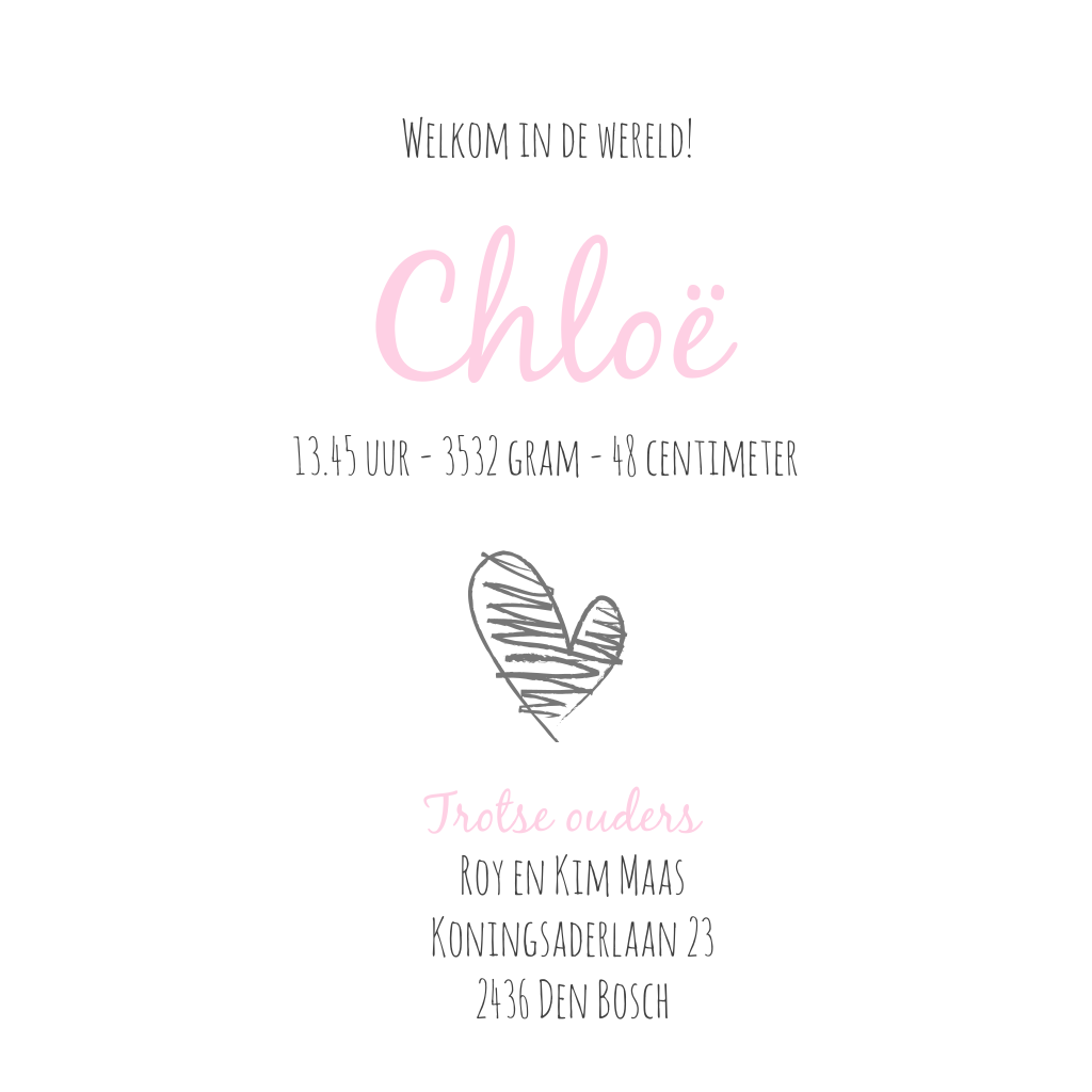 Stoer geboortekaartje voor een meisje met krijtbord-look en hartje
