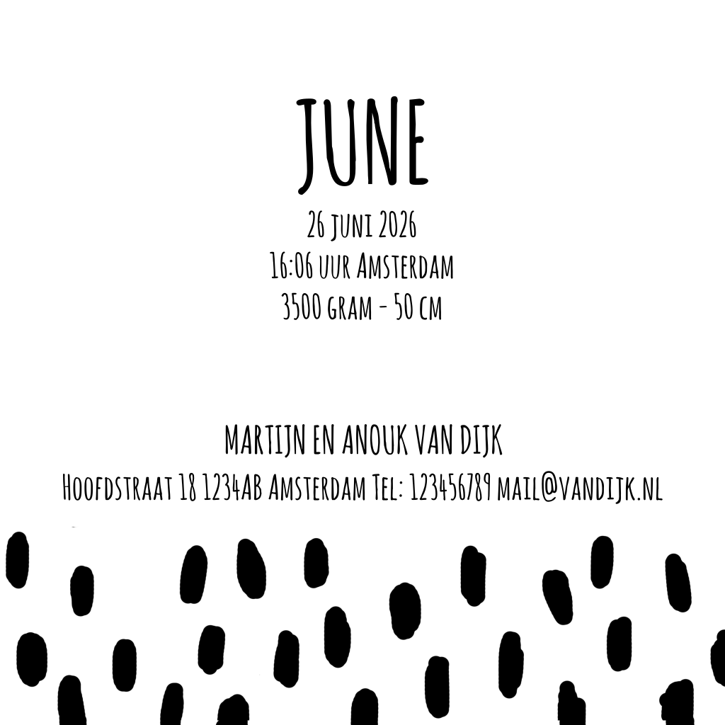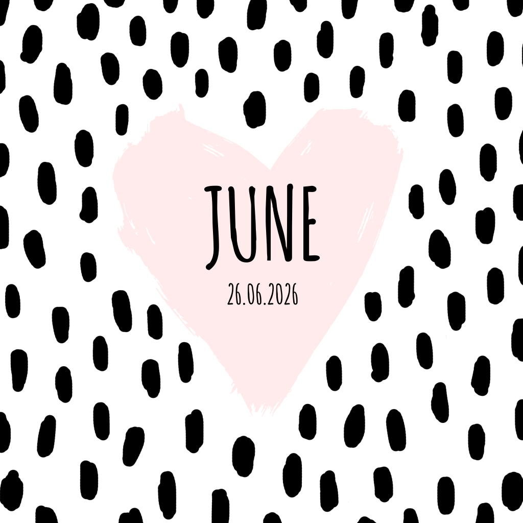 Geboortekaartje met print in zwart-wit en hartje - meisje