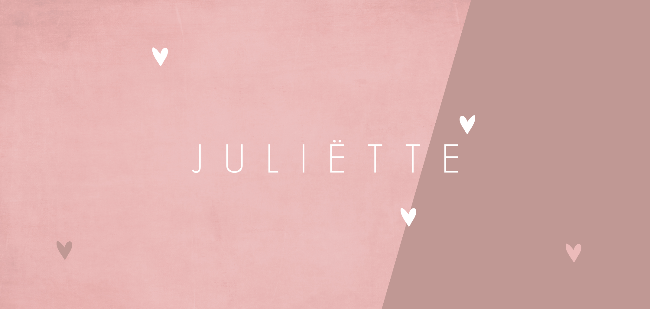 Stoere geboortekaart met schuine vlakken in oud roze voor een meisje. De lieve hartjes geven de vintage vlakken een zachte sfeer.