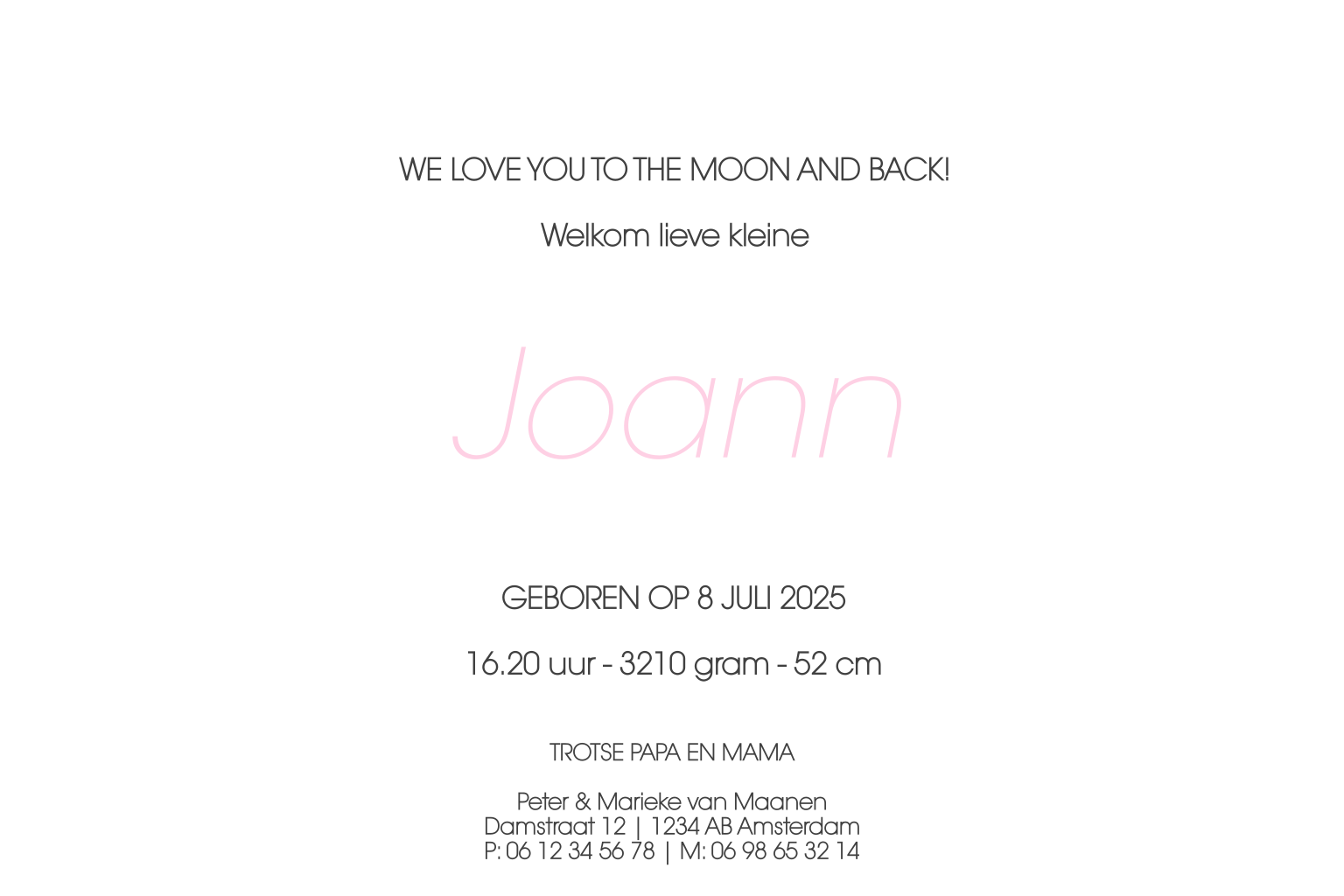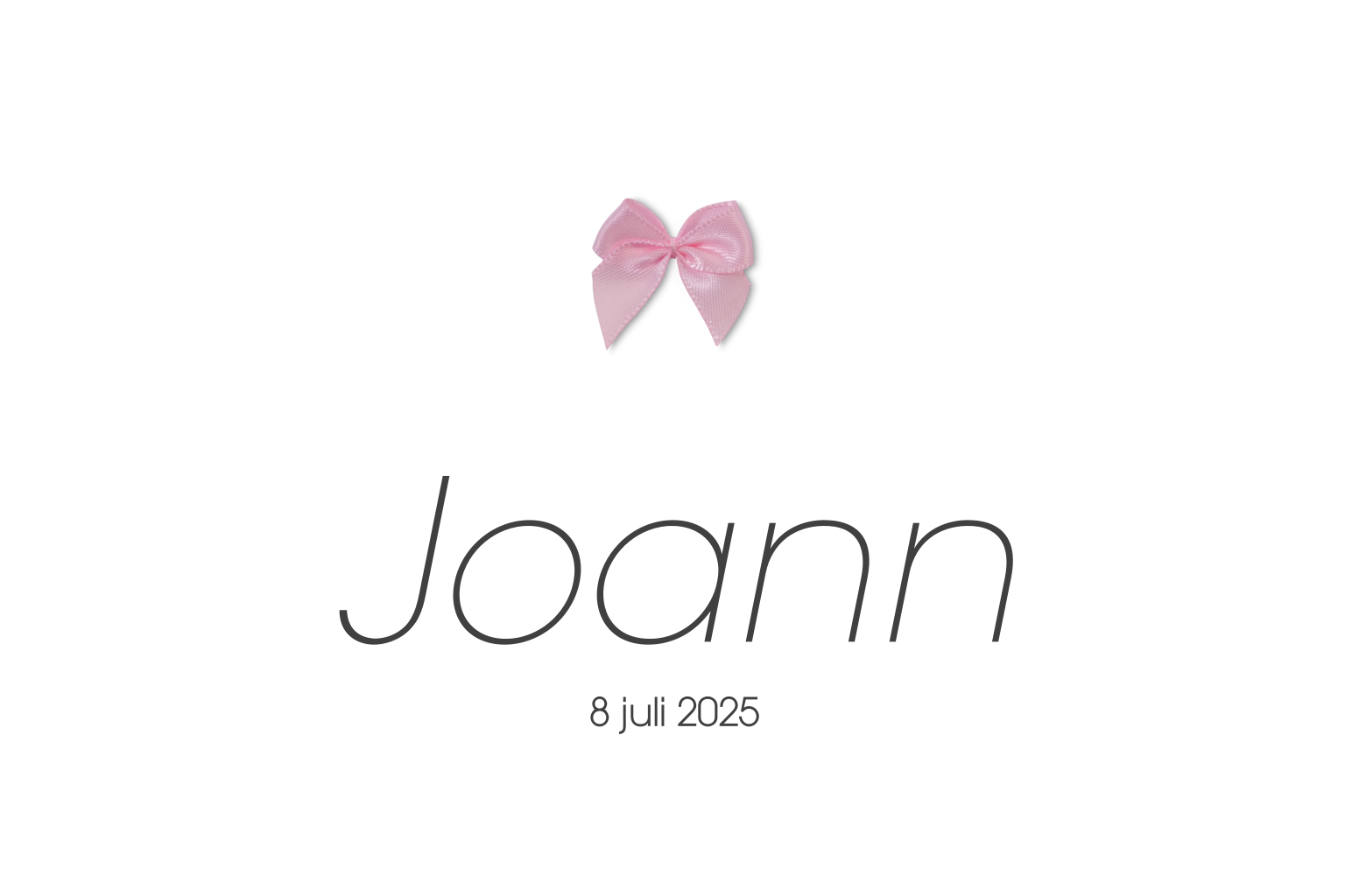 Klassieke geboortekaart met strikje voor meisje. Je kunt ook voor een gouden strikje kiezen. Je kunt kiezen of je de foto aan de binnenzijde laat staan, of dat je er een leuk gedichtje neerzet.
