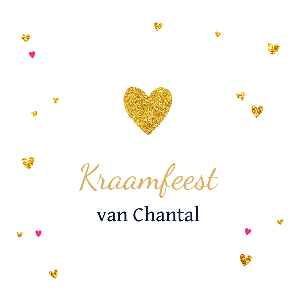 Allemaal hartjes in goudkleur, met glitters en in roze: wat vrolijk! Wie nodig jij uit voor de kraamborrel van jouw kleine meid? Deze gezellige uitnodiging is leuk om in te steken bij de geboortekaartje met gouden voetjes.