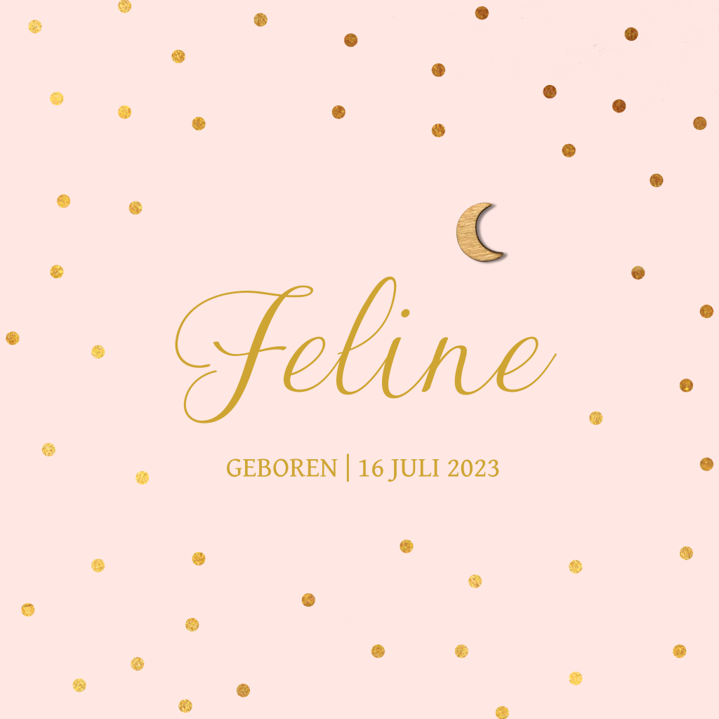 Vrolijk maan-geboortekaartje met goudlook stippen