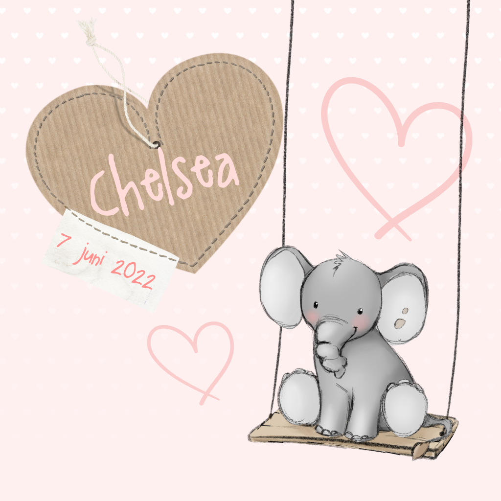 Lief geboortekaartje met olifantje, kraft en hartjes