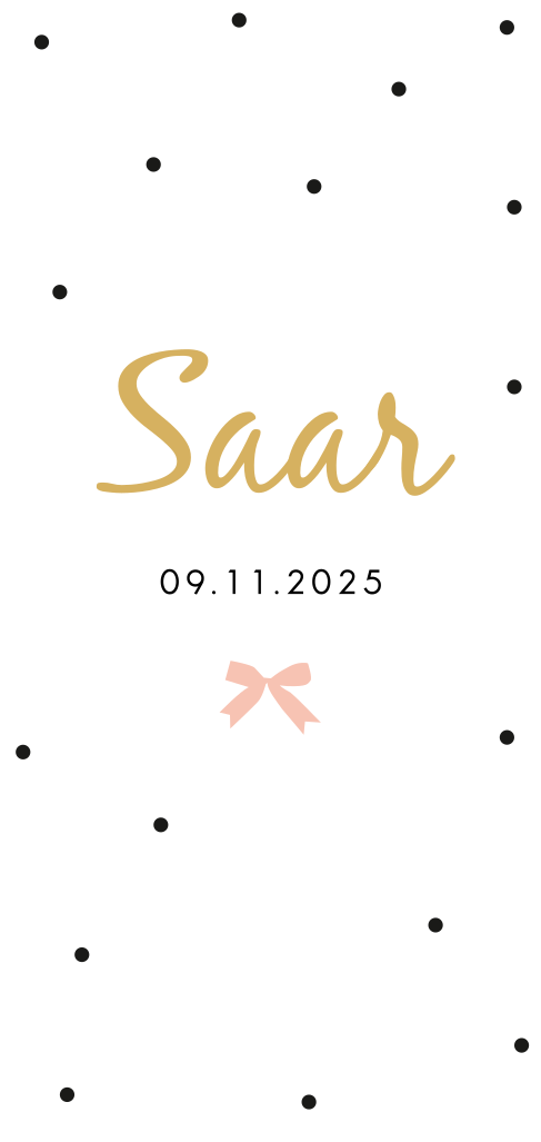 Hip geboortekaartje voor een meisje met roze strikjes en een trendy stippen achtergrond. Pas de kleuren en typografie naar wens aan in onze editor.