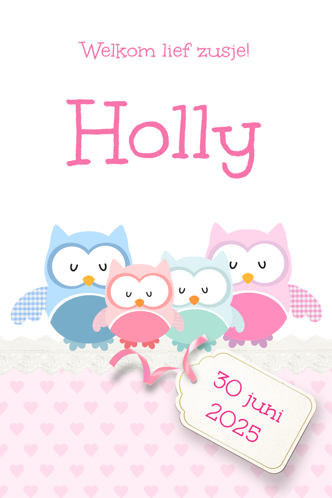 Geboortekaartje zusje met uiltjes
