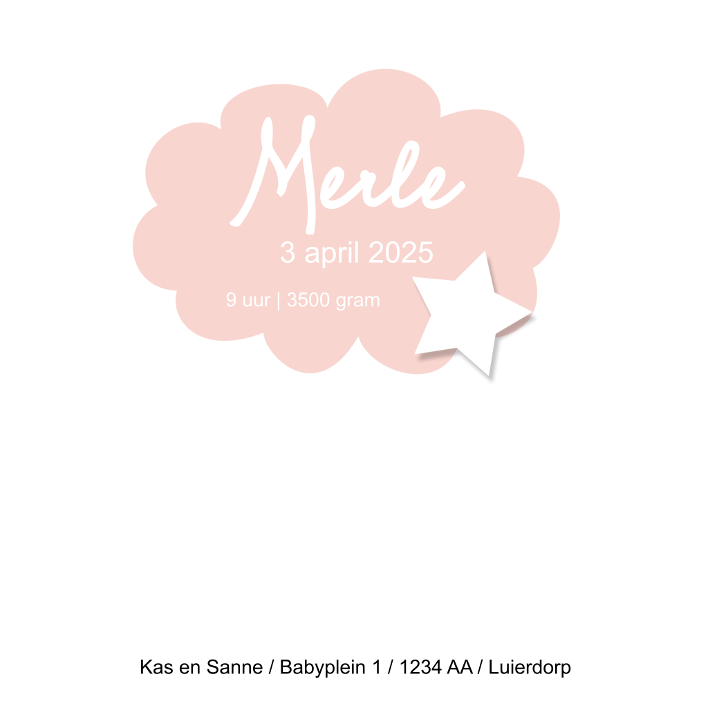 Schattig geboortekaartje met zachtroze naamwolkje
