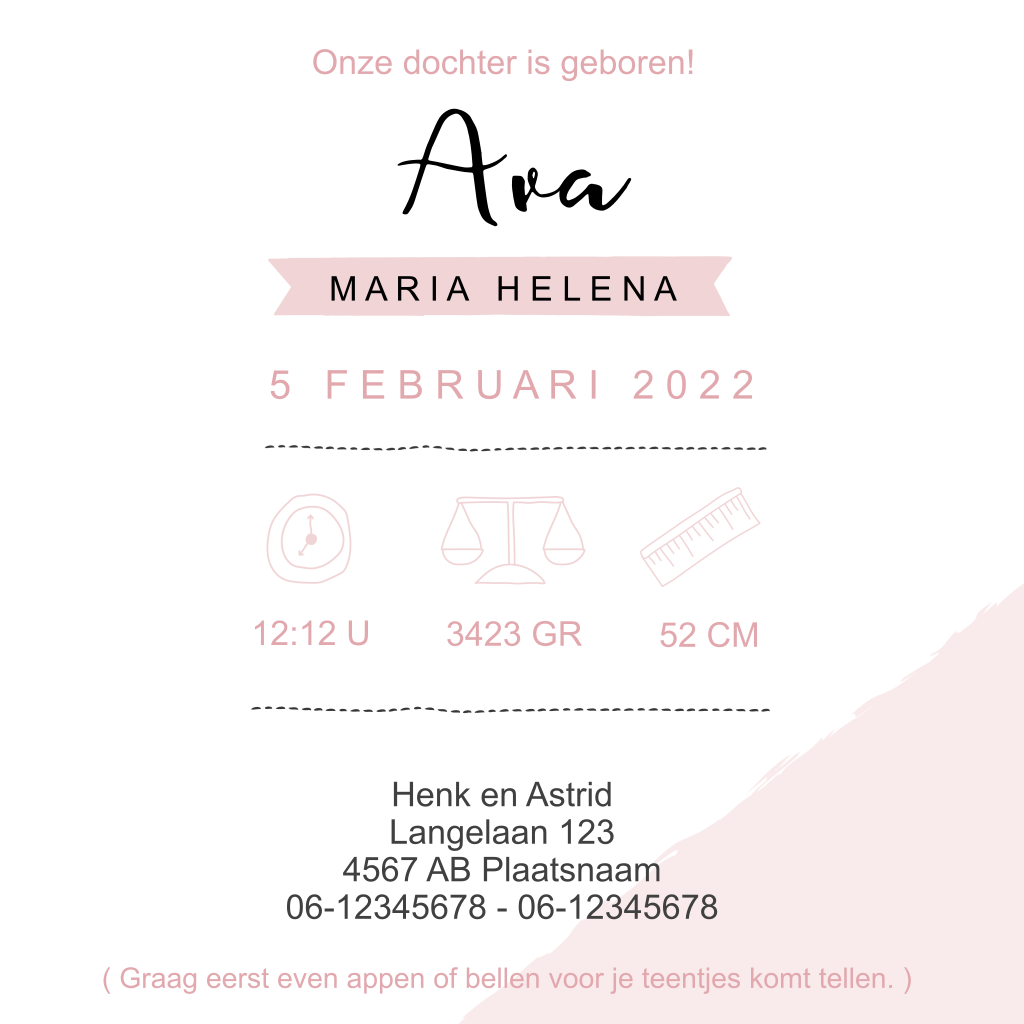 Wat een lieve babykaart om de geboorte van je dochter aan te kondigen! Deze geboortekaart heeft een mooie illustratie van een hart met bloemetjes. Pas de tekst makkelijk aan in de editor.