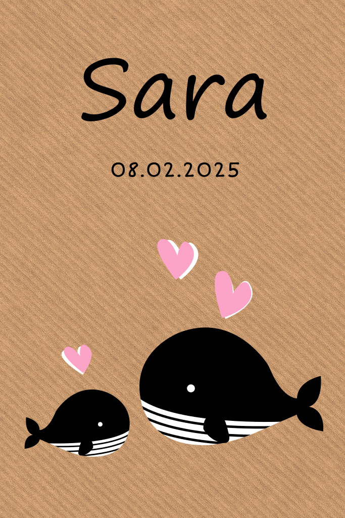 Stoer geboortekaartje met baby walvis voor meisje