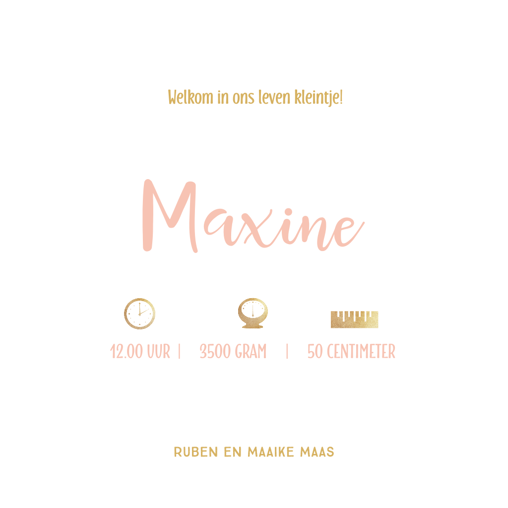 Een lief en hip kaartje voor jullie dochter met watercolour en trendy goudlook details. In de editor kun je de watercolour omkleuren. Maak je kaartje uniek.