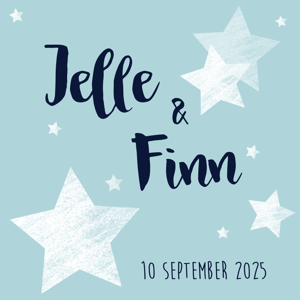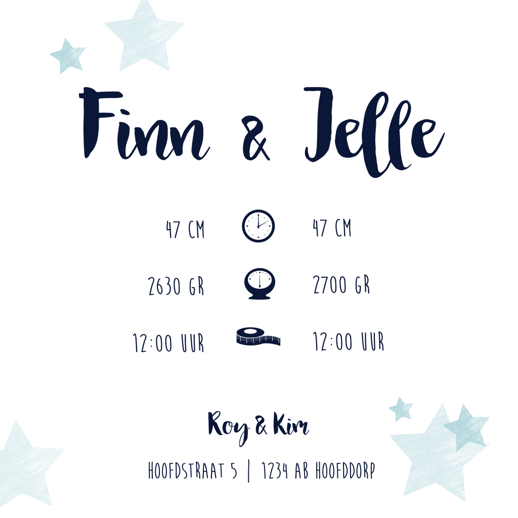Stoer geboortekaartje voor een een- of twee-eiige jongens tweeling. Maak een unie ontwerp van dit geboortekaartje door de elemenjes uit dit tweelingkaartje om te kleuren in onze editor.